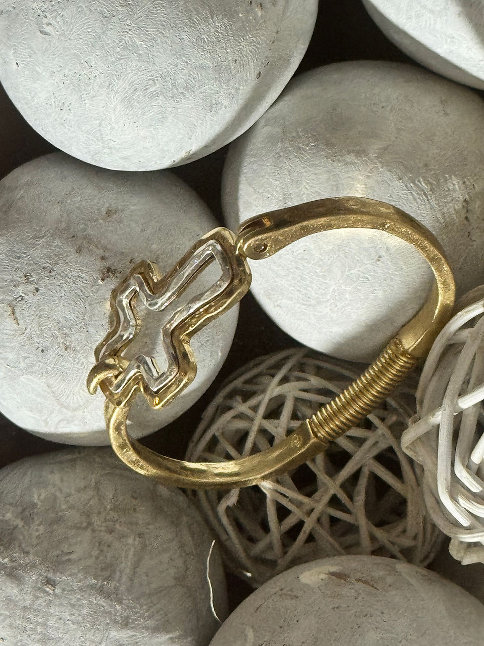 Hammered Cross Sideways Wired Cuff Hinge Bracelet