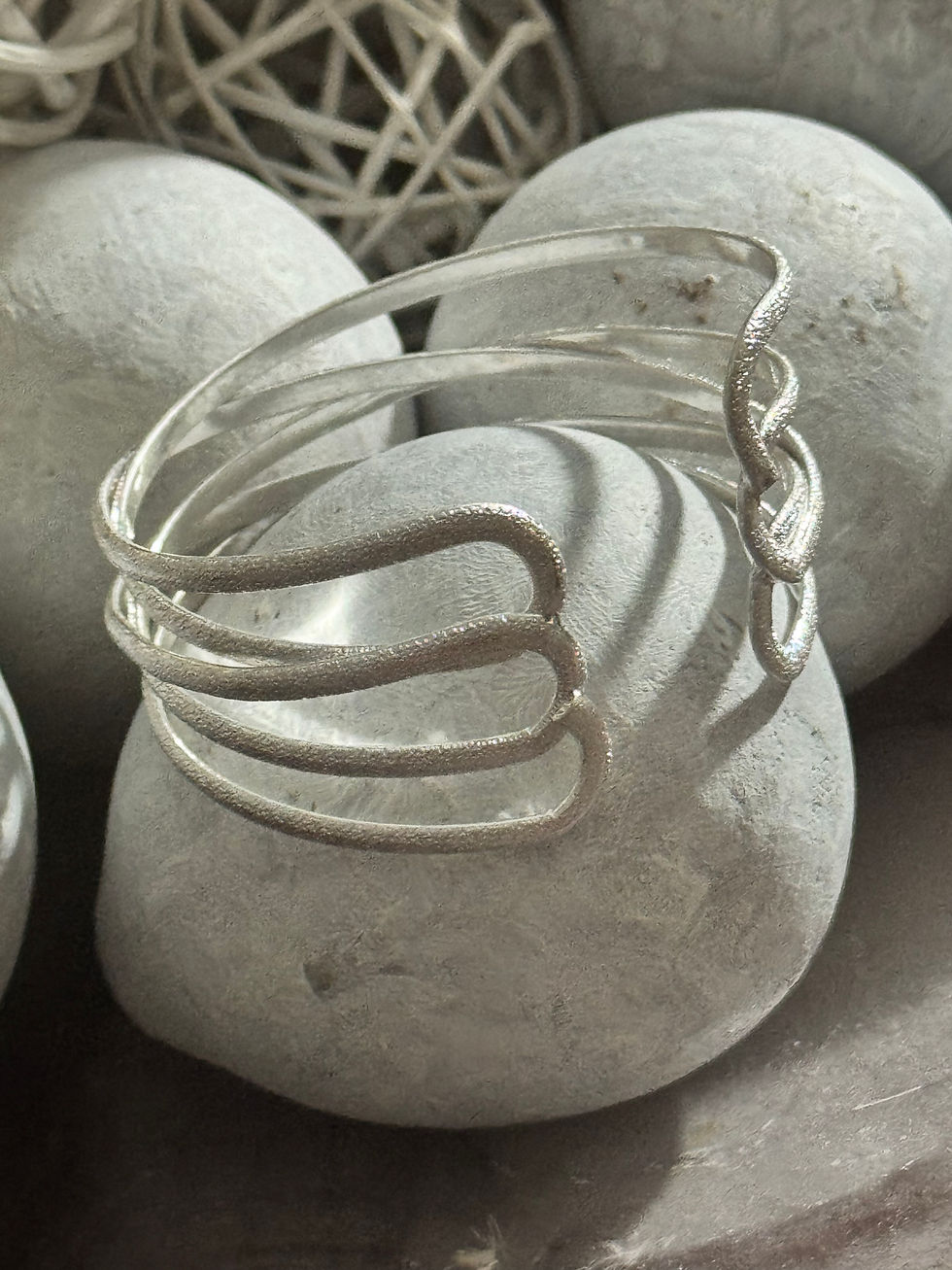 Multi-Layer Sand-Texture Metal Open Cuff Bracelet Silver